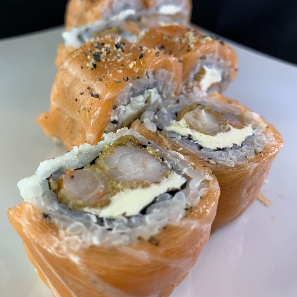 Desfrute do nosso exuberante 'Uramaki Ebi Furai', uma especialidade da categoria 'Uramakis'. Oito unidades cuidadosamente preparadas, onde o sushi surge com o arroz habilmente posicionado por fora. No coração do prato, é revelado um recheio irresistível de camarão criteriosamente empanado, que se funde harmoniosamente com a suavidade do cream cheese. Finalizando essa obra-prima, uma generosa cobertura de salmão fresco que adiciona um toque de sofisticação e sabor. Venha apreciar essa deliciosa combinação de texturas e sabores!