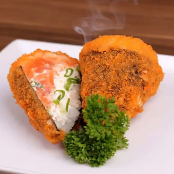 Este 'Temaki Hot Filadelfia' é uma deliciosa fusão oriental e ocidental. Apresenta um grande cone de alga marinha, repleto de arroz de sushi perfeitamente cozido. Dentro, você encontrará generosas fatias de salmão fresco, cuidadosamente selecionado, que se mesclam harmoniosamente com o cremoso e suave queijo Filadélfia, proporcionando uma textura e sabor incomparáveis. Para finalizar, o temaki é delicadamente coberto com uma crocante camada de farinha Panko, que ao ser frita, cria uma irresistível casquinha crocante. Cada mordida deste Temaki Hot Filadelfia é um convite para uma explosão de sabores inesquecíveis.