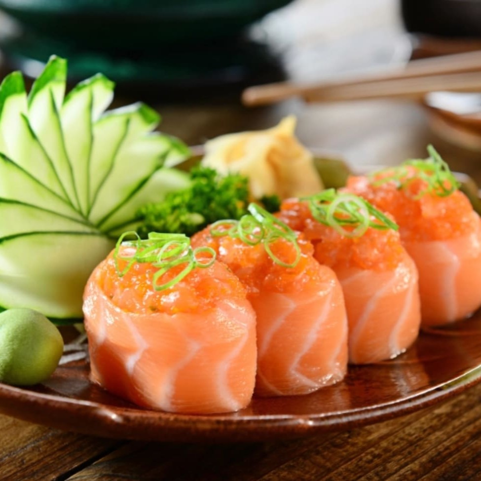 Descubra o sabor inigualável do nosso Temaki de Salmão, uma verdadeira obra-prima da culinária japonesa. Cuidadosamente preparado com uma generosa porção de salmão fresco, de qualidade superior, envolvido em um delicado cone de alga nori. O arroz, temperado à perfeição, acrescenta uma textura suave, complementando harmoniosamente o sabor do salmão. Esta delícia é uma explosão de sabor que vai conquistar o paladar dos apreciadores da autêntica cozinha oriental. Experimente e se surpreenda!