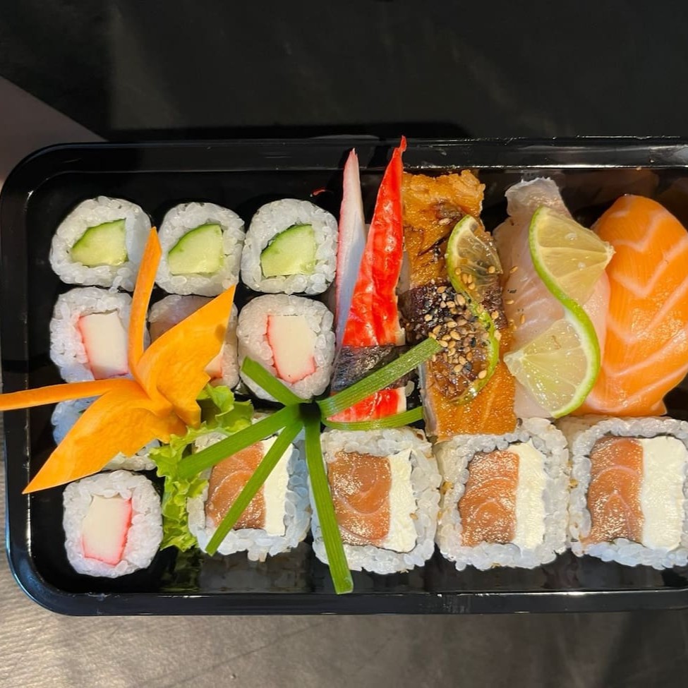 6 Niguiri Variado,4 Uramaki Filadelfia, 4 Uramaki California, 4 Hosomaki De Salmão,4 Hossomaki De Atum.