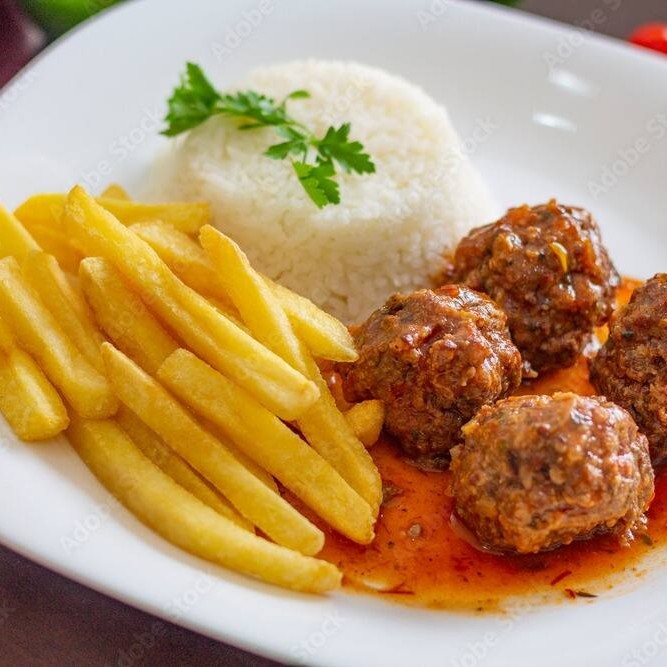 Almôndegas Ao Molho + Batata Frita ( 3 Tamanhos )