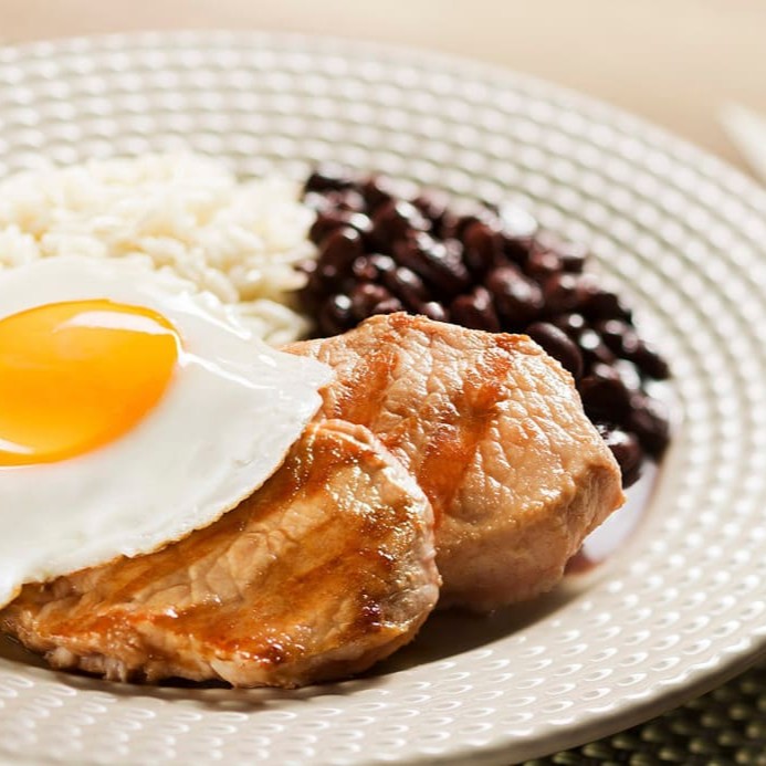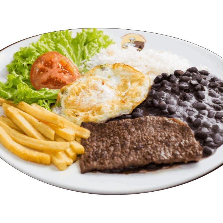 Arroz branco soltinho, feijão, delicioso bife grelhado com ovo