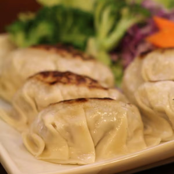 Guioza 6 unid.: "Pastelzinho" grelhado recheado com carne bovina, suína, acelga, alho e gengibre.