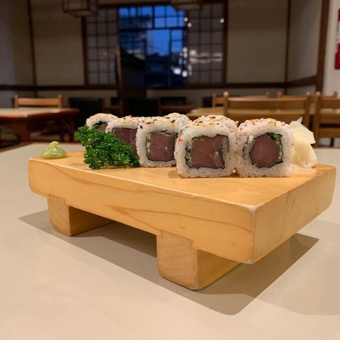Niguiri: 5 salmão, 4 atum; uramaki: 4 filadélfia; hossomaki: 3 salmão, 3 atum; gunkan: 4 salmão jo.