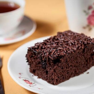 Bolo simples chocolate com granulado.