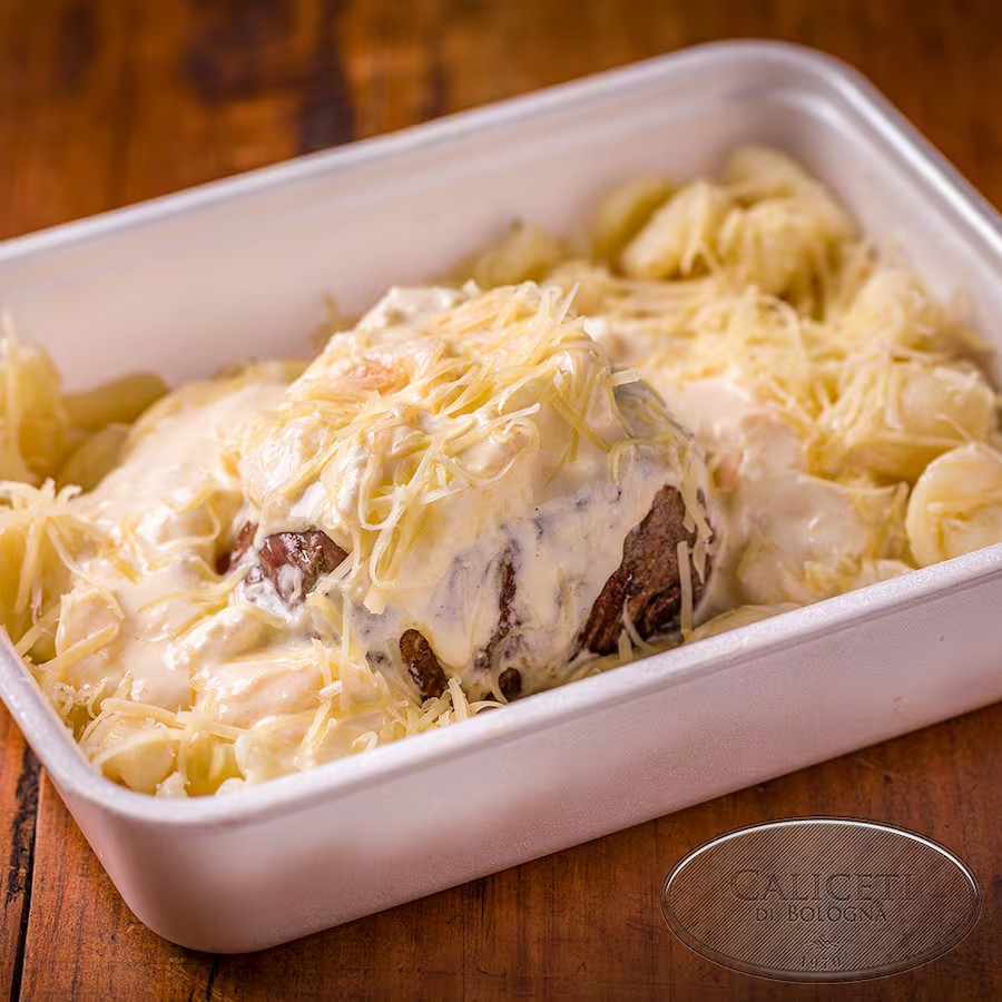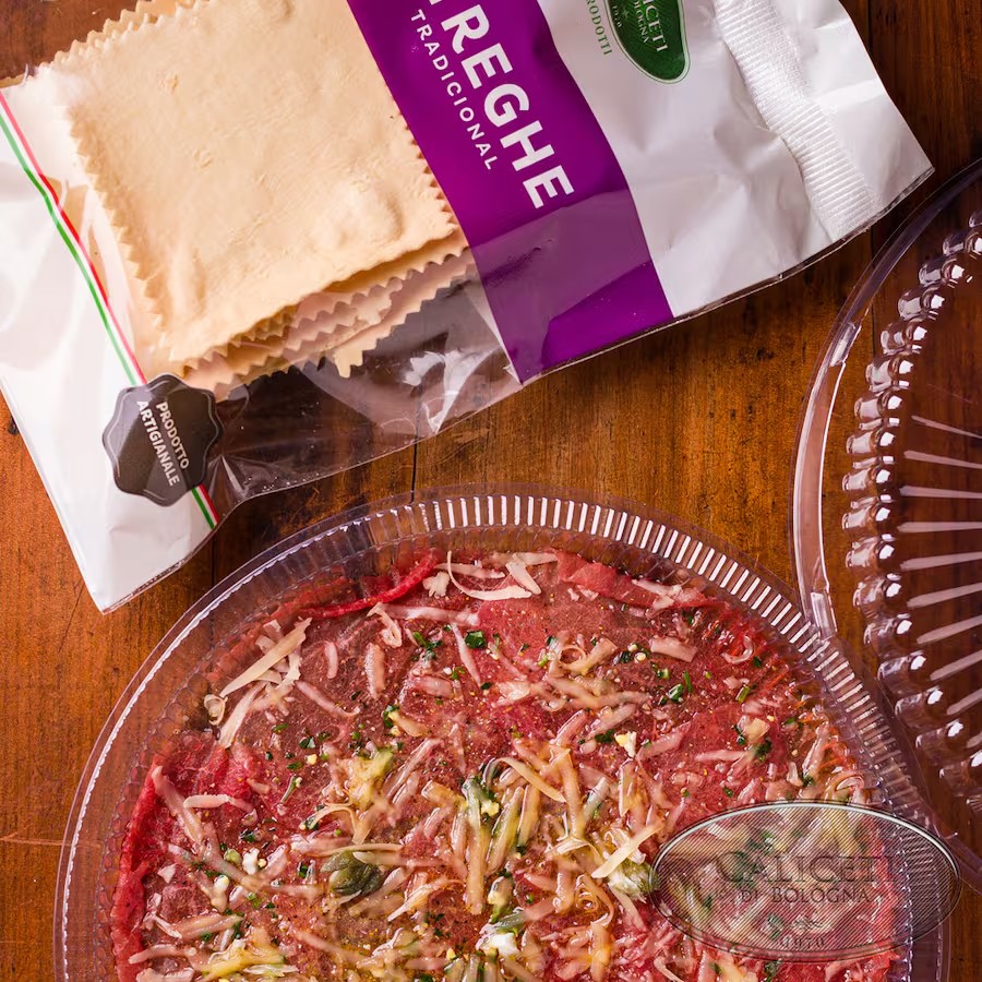 Massa artesanal à base de ovos e farinha de grano duro, recheada com carne temperada. Sabor tradicional e irresistível. Serve duas pessoas.