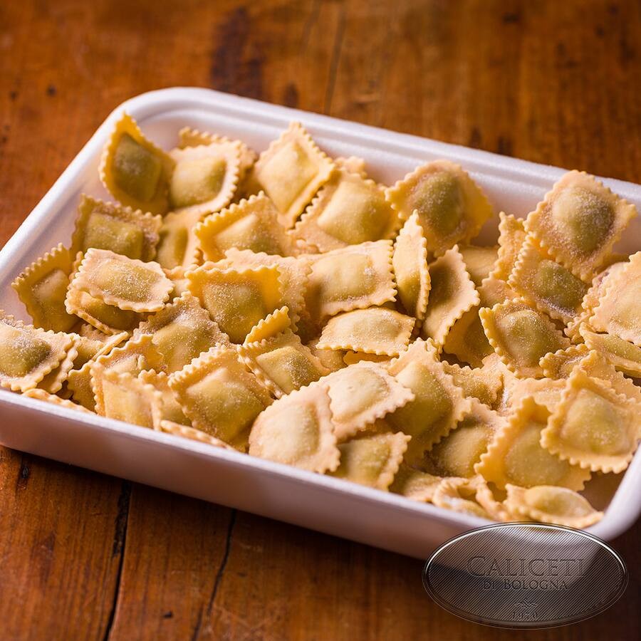 Pastel de massa de ovos recheado com muçarela de búfala. Deve ser cozido em água fervente com um pouco de sal. Calcule aproximadamente 200g por pessoa.