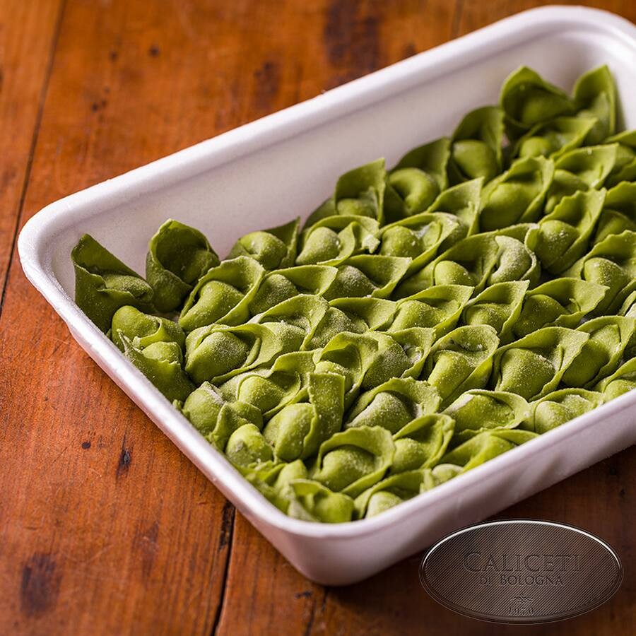 Delicado pastel à base de massa de ovos e espinafre, recheado com creme de ricota temperada. Deve ser cozido em água fervente com um pouco de sal. Para cada pessoa, aproximadamente 200g.