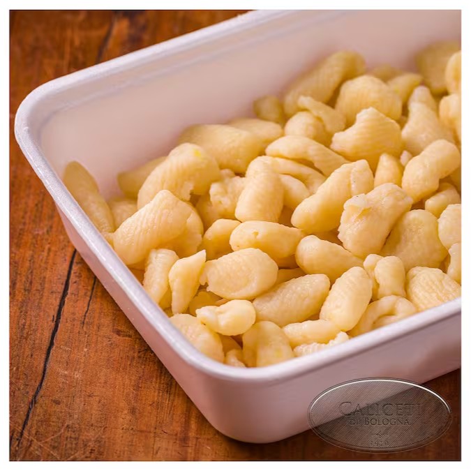 Massa artesanal feita à base de batatas selecionadas e farinha de grano duro. Leve, macia e saborosa. Serve duas pessoas.