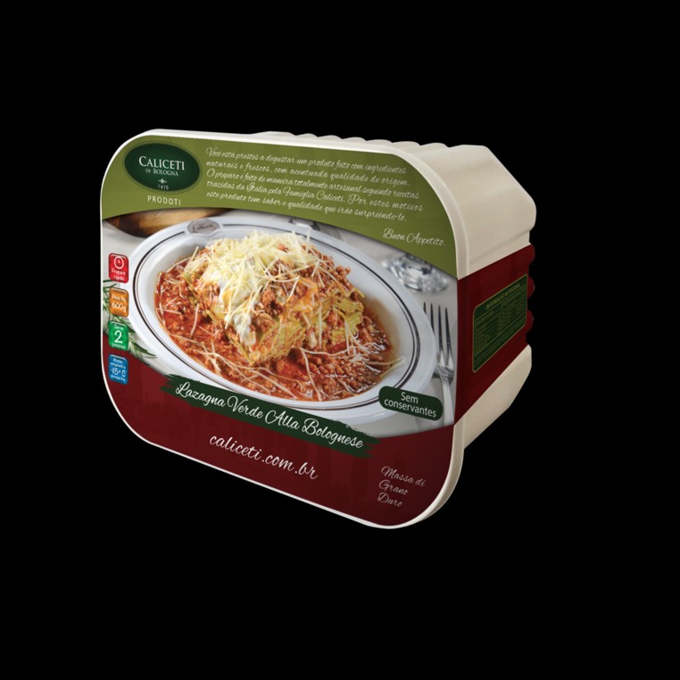 Lasanha verde ao molho bolonhesa, ideal para 2 pessoas, com aproximadamente 600g. Pronta para aquecer e saborear.