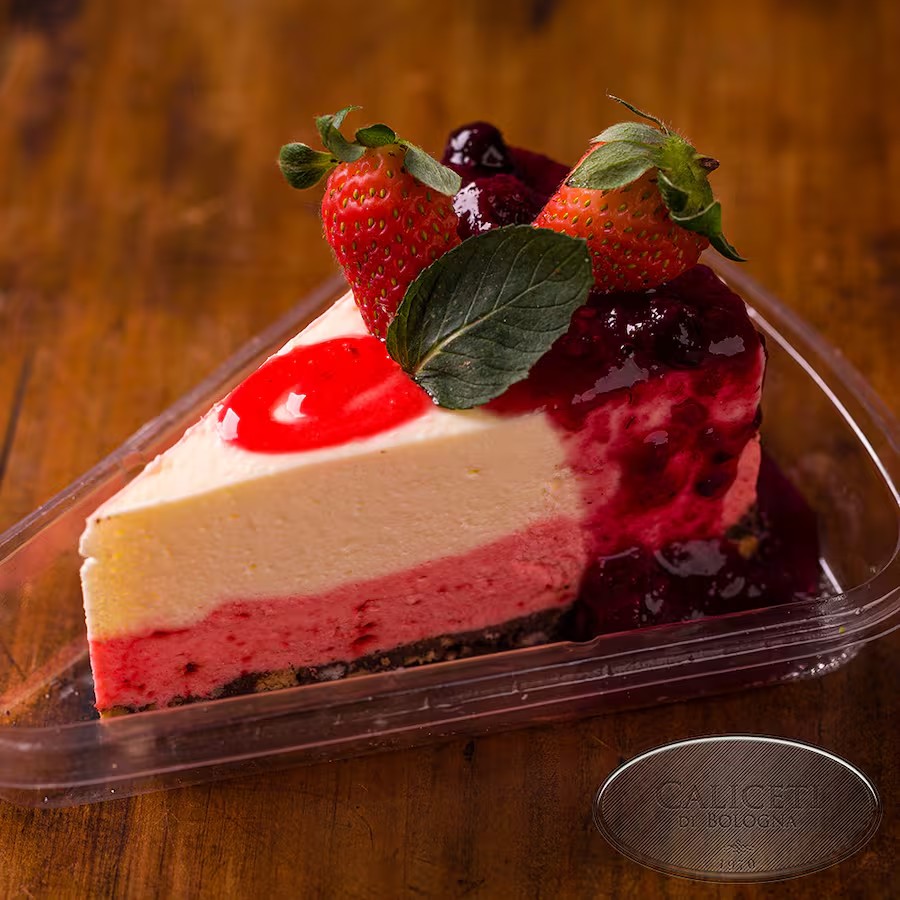 Deliciosa cheesecake cremosa, coberta com calda de frutas vermelhas frescas. Uma sobremesa doce e leve, perfeita para finalizar sua refeição.