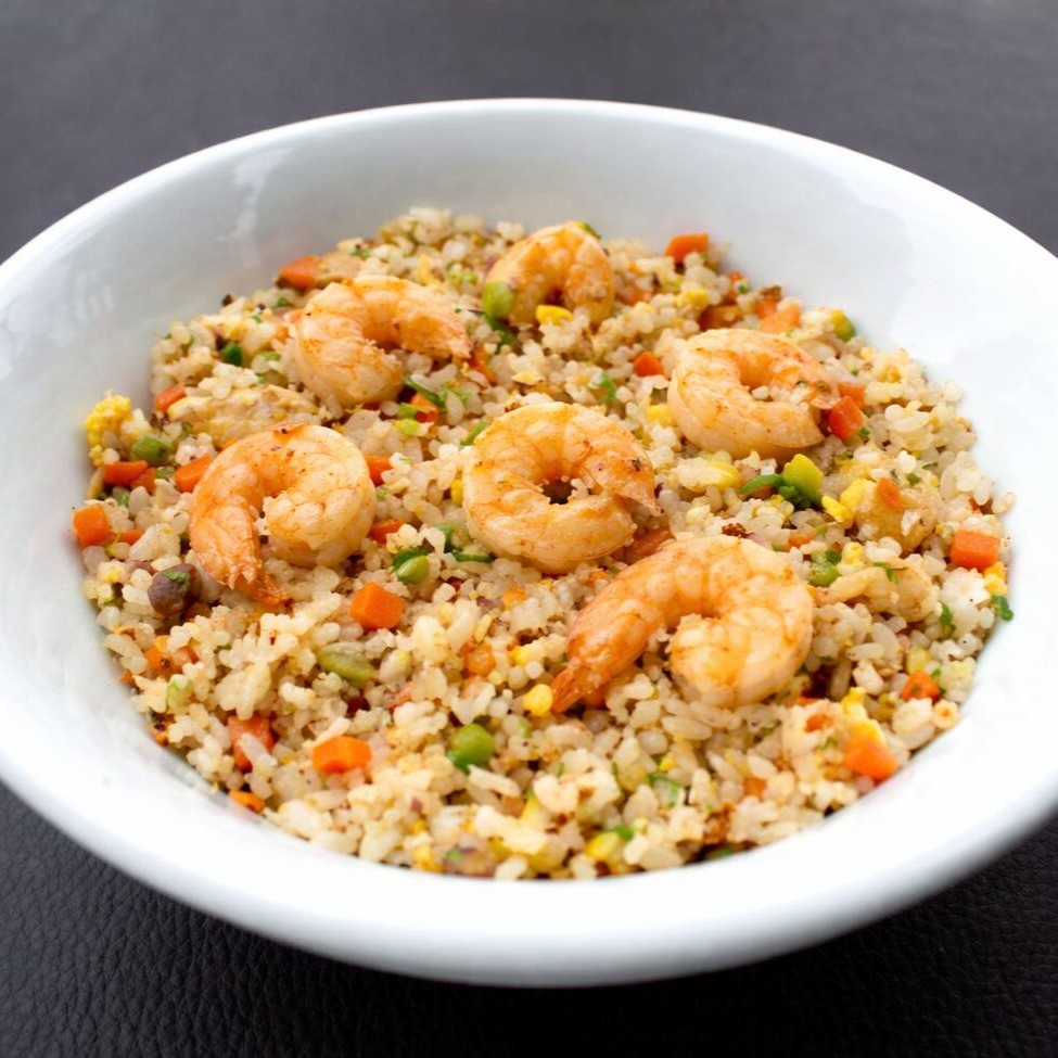400g - Gohan (arroz branco japonês) temperado com legumes (cenoura, cebola e abobrinha), camarão, ovo e finalizado com cebolinha.