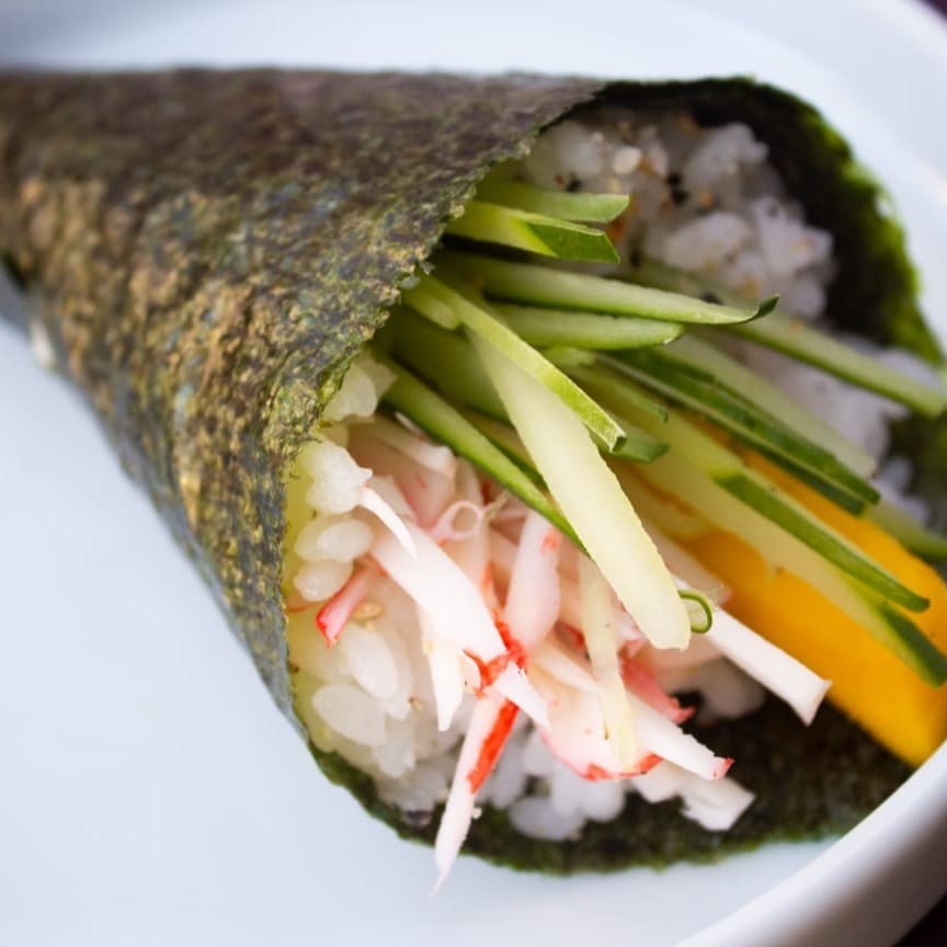 Sushi formatado a mão, sem alga.