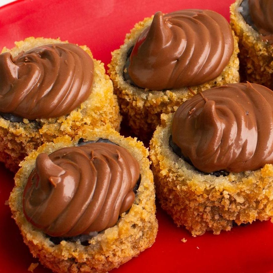 Sobremesa: 4 unidades de harumaki de chocolate cremoso com morango.