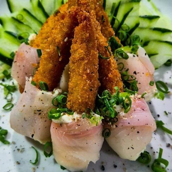 Enrolado na tilápia fresca, Sem Arroz, com cream cheese, tilápia empanada, cebolinha e gergelim! Irressistível!