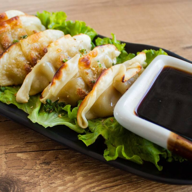 Pratos quentes: 4 bolinho de salmão, 4 hot filadélfia e 4 guioza frito.
