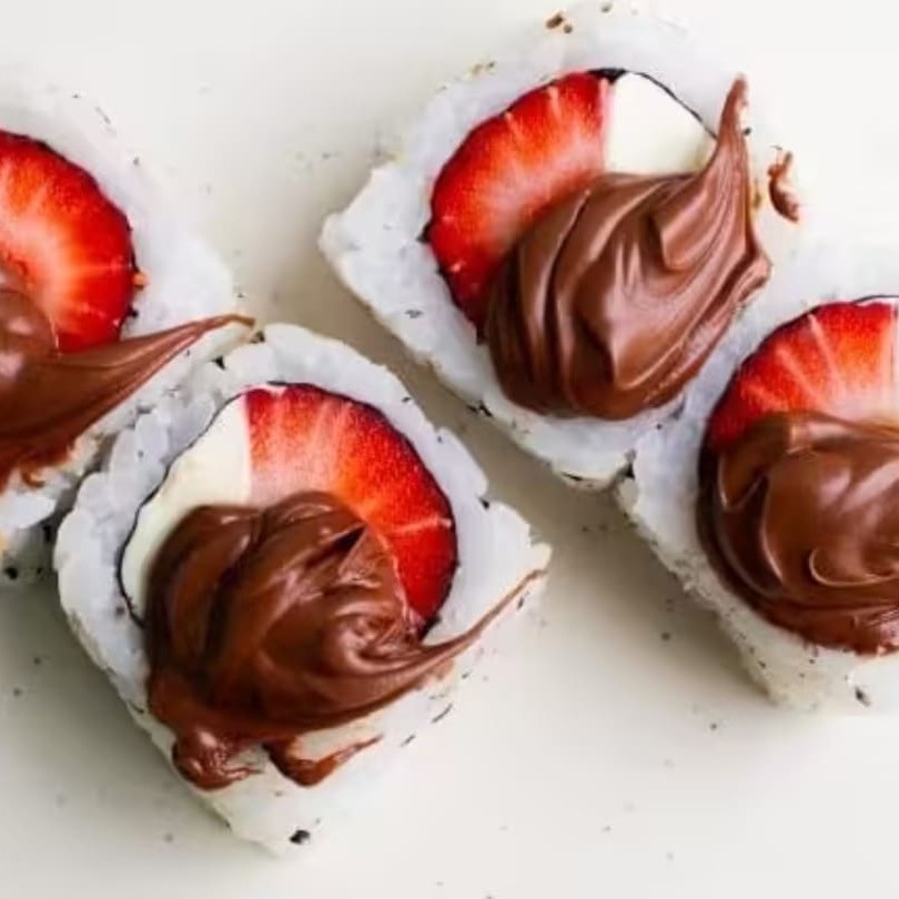 Sushi doce - Recheado com morango, cream cheese e chocolate cremoso