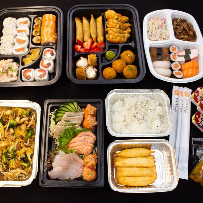Acompanha gengibre, wasabi, shoyu e hashi.