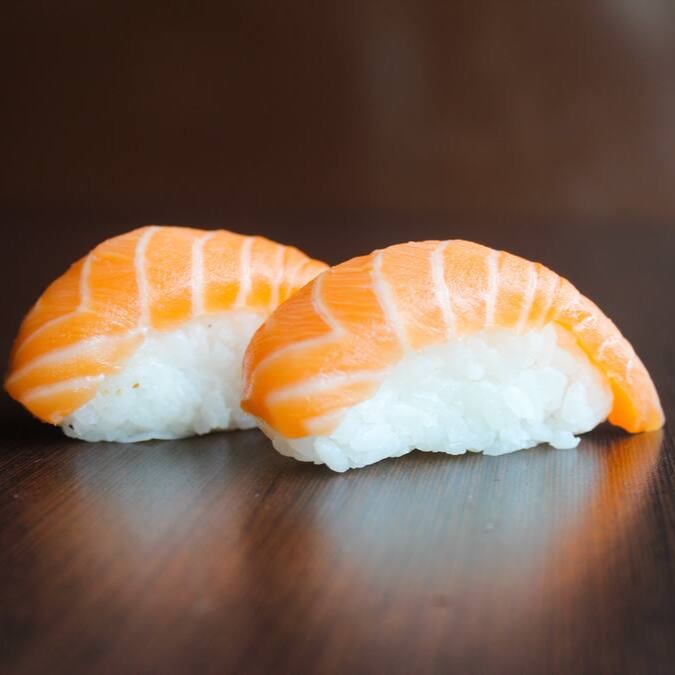 20 unidades - 8 fatias de salmão, 4 salmão filadélfia, 2 sushi joe, 2 nigiris salmão e 4 shake