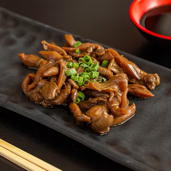 Porção de 100 gramas de shimeji na manteiga, com cebolinha.