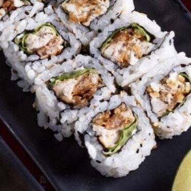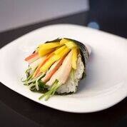Sushi enrolado grosso com Salmão fresco, alface, maionese e kani.