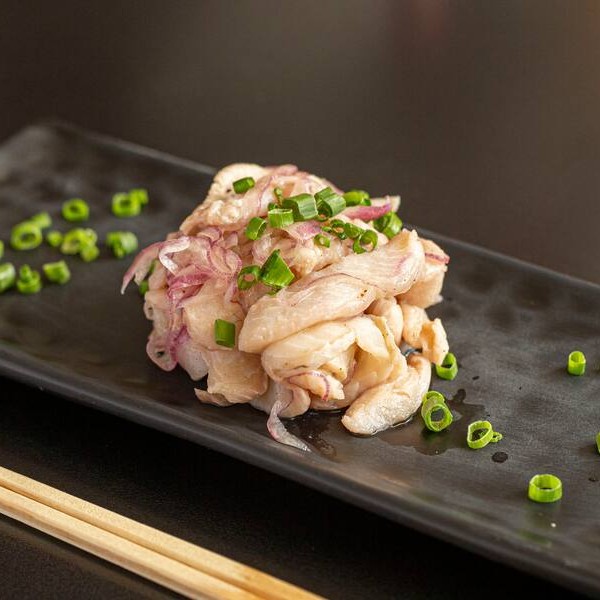 Salmão marinado no limão, com cebola roxa um toque de pimenta e temperos especiais.