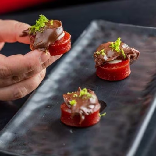 Cream cheese envolto por goiabada com cobertura doce de leite com cacau e raspas de limão ( 4 unidades )
