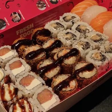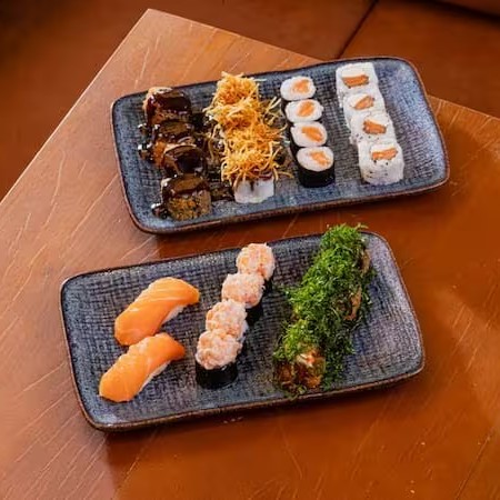 4 Shakemaki, 4 Uramaki Filadélfia, 4 supremo Filadélfia , 6 Sashimi de Salmão, 4 Niguiri de Salmão, 4 Jyo Tataki.
