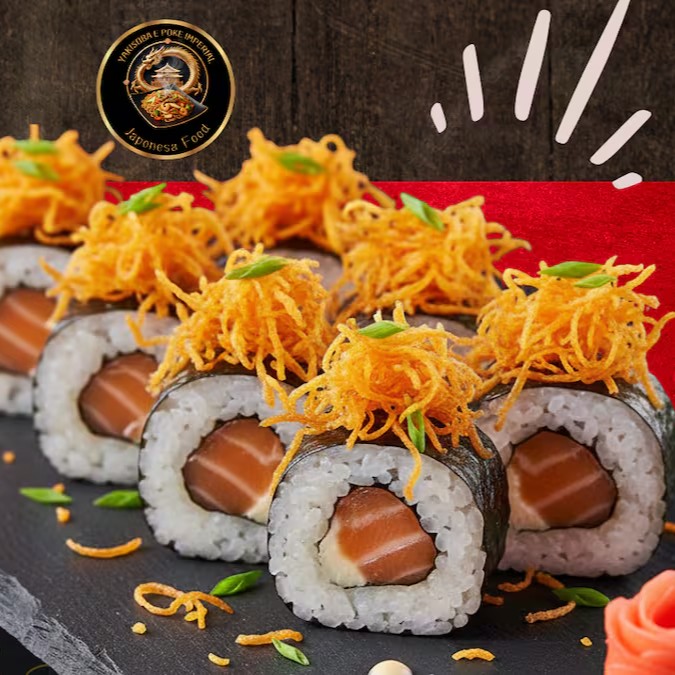 Hossomaki delicado e tradicional, com recheio leve e alga crocante, finalizado com toping cheio de fresco por cima. Sabor puro e elegante em cada mordida.