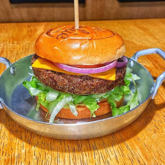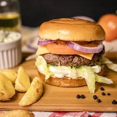 O Veg. Clássico é uma obra-prima vegetariana. Com um hambúrguer de proteína de soja de 130 gr, meticulosamente preparado, este prato se destaca. A escolha do pão fica ao seu critério: um brioche macio e saboroso ou um pão crocante irresistível. Cada mordida é realçada pela fatia de queijo cheddar derretido, enquanto a alface americana, cortada à juliana, adiciona uma crocância fresca. O sabor do tomate suculento e da cebola roxa vibrante complementam perfeitamente o conjunto. Finalizado com uma generosa porção da nossa maionese artesanal, feita na casa, este prato é verdadeiramente um clássico reinventado para os entusiastas da comida vegetariana.