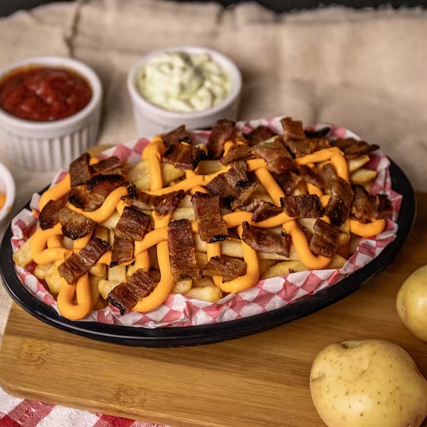 Desfrute de uma porção generosa e saborosa de 'Batata Cheddar e Costela'. Nesta especialidade, as batatas fritas crocantes são cobertas com um generoso molho de cheddar puro, riquíssimo em sabor. Para completar, uma suculenta costela desfiada, cuidadosamente defumada, é adicionada, proporcionando uma combinação única e irresistível. A porção, aproximadamente 300g, é perfeita para compartilhar momentos agradáveis. Um deleite para os amantes de porções robustas e saborosas.