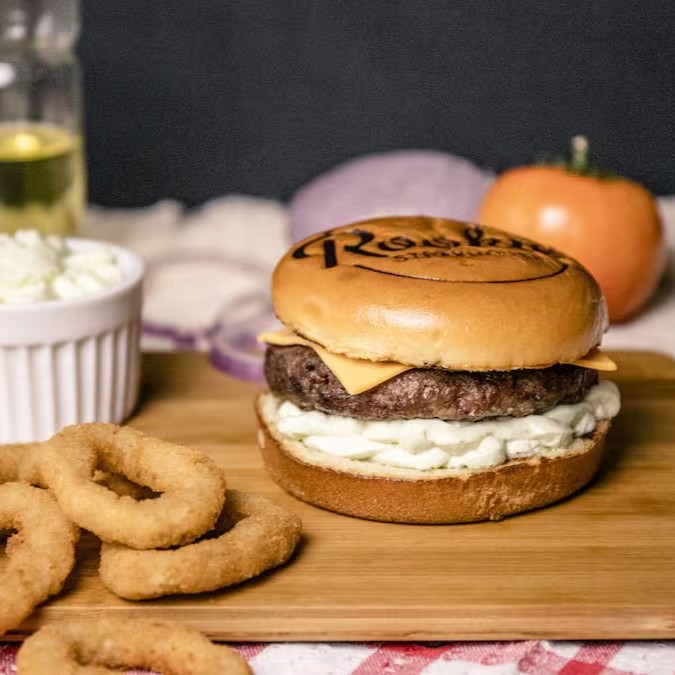 Apresentando o 'Novo - Veg. Rodeio', uma deliciosa opção na categoria 'Vegetarianos'. Este prato é composto por um tenro hambúrguer artesanal de proteína de soja com 130gr, delicadamente coberto com uma suculenta fatia de cheddar. Acompanhado de irresistíveis Onion Rings, tudo isso finamente acomodado em um pão brioche macio ou crocante, conforme sua preferência. Para finalizar, uma generosa dose de nosso autêntico e encorpado molho Barbecue, que agrega um toque defumado e agridoce ao prato. Uma refeição repleta de sabor e texturas que certamente irá encantar os paladares mais exigentes.