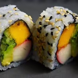 Sushi recheado com arroz e manga