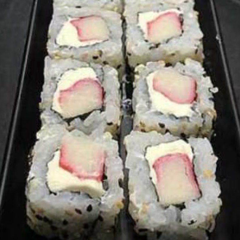 Sushi recheado com arroz, kanikama e creme cheese