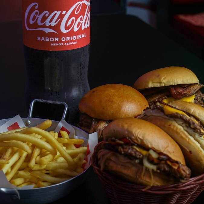 Escolha entre nossos Burgers Mais queridinhos da casa, juntamente com os nossos Complementos + 2 Peck de Fritas + Refri 600 Ml + 2 Burger