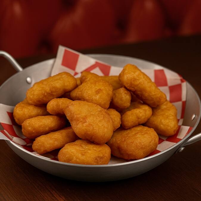 Nugget de Frango, empanado e Frito crocante por fora e macia por dentro uma ótima opção para acompanhar o seu Pedido. Vem 18 unidades
