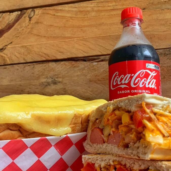 Desfrute de nossa oferta, escolha seu hot dog favorito de nossa seleção premium, Com a noscuidadosamente prensados para realçar os sabores irresistíveis, com a nossa maionse da Casa, este combo também inclui uma refrescante Coca-Cola de 600ml.