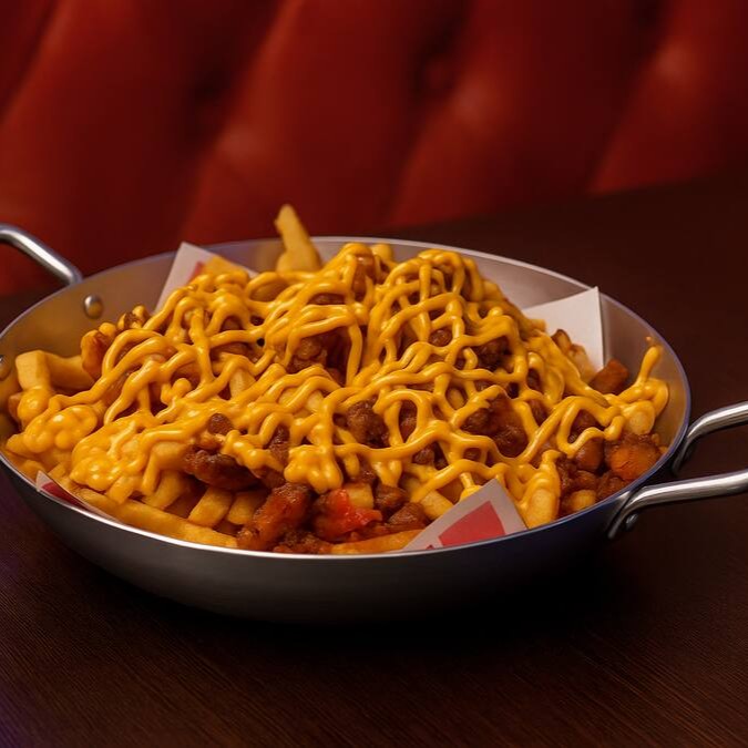 Porção de Fritas crocante com aquele bacon sinistro de bão, e aquela dose de Cheddar pra regar sua fome e dividir com a Turma