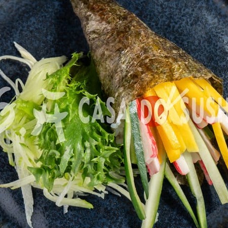 O Temaki Kani é uma explosão de sabor em cada mordida. Com kani desfiado e suculento, envolvido em algas crocantes, oferece uma combinação irresistível de textura e frescor.
