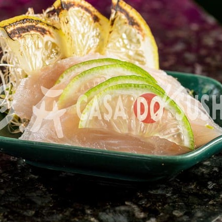 Tilápia: Manga: Cebola roxa: Tomate cereja: Cebolinha: Suco limão: Suco laranja: Hondashi: Pimenta Sriracha: