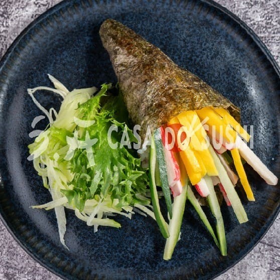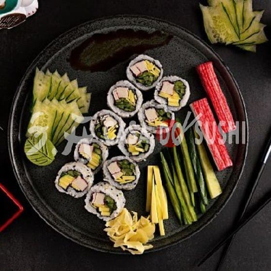 Recheado Com Kani, Manga E Pepino Crocante, Envolto Em Alga Nori, Oferece Uma Explosão De Frescor E Cremosidade Em Cada Mordida.