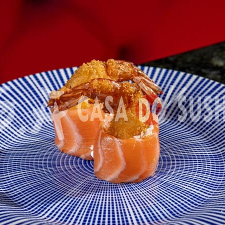 Com suculento salmão fresco, levemente temperado e moldado em formato de hambúrguer de arroz, é coberto com uma camada de cream cheese e um toque de molho especial.