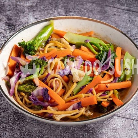 Desfrute de 500g de yakisoba recheado com legumes frescos e crocantes, envoltos em um molho saboroso e levemente adocicado.