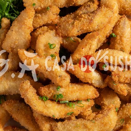 Deliciosas fatias de salmão crocante são combinadas com uma camada irresistível de crocância, criando uma experiência única.
