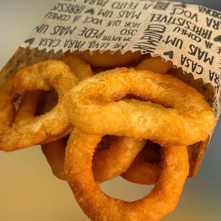 Porção com 10 irresistíveis anéis de cebola empanados.