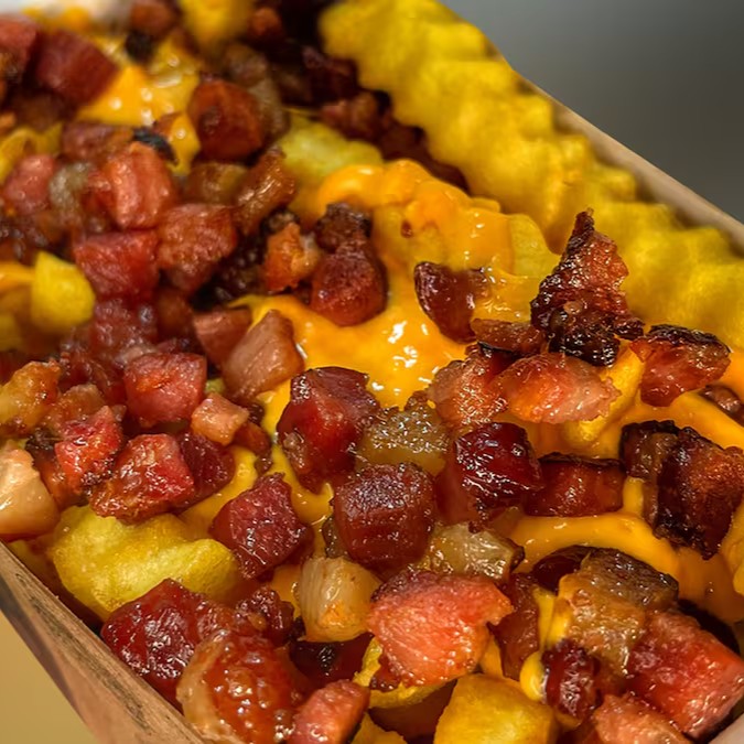 batata frita com cheddar e bacon