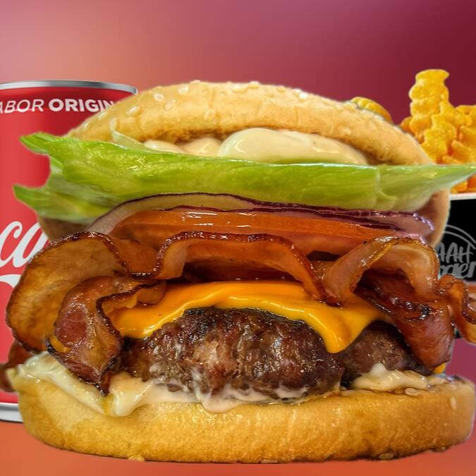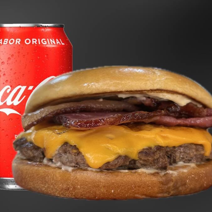 Pão brioche, Carne smash de 80g, Queijo Cheddar fatias, Bacon em tiras, maionese + 1 coca cola 350ml.