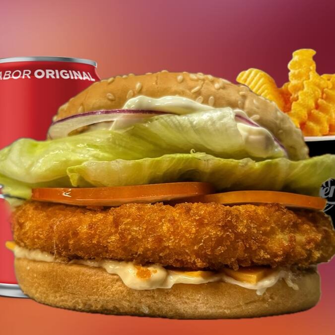 Combinação perfeita de frango 140g frito, suculento, cuidadosamente empanado, queijo cheddar derretido, em harmonia com um mix de salada fresca e crocante, composto por tomates, alface verde-radiante e cebola roxa vibrante. Tudo isso enriquecido com uma deliciosa maionese, feita à perfeição. Uma explosão de sabores que irá encantar o seu paladar!