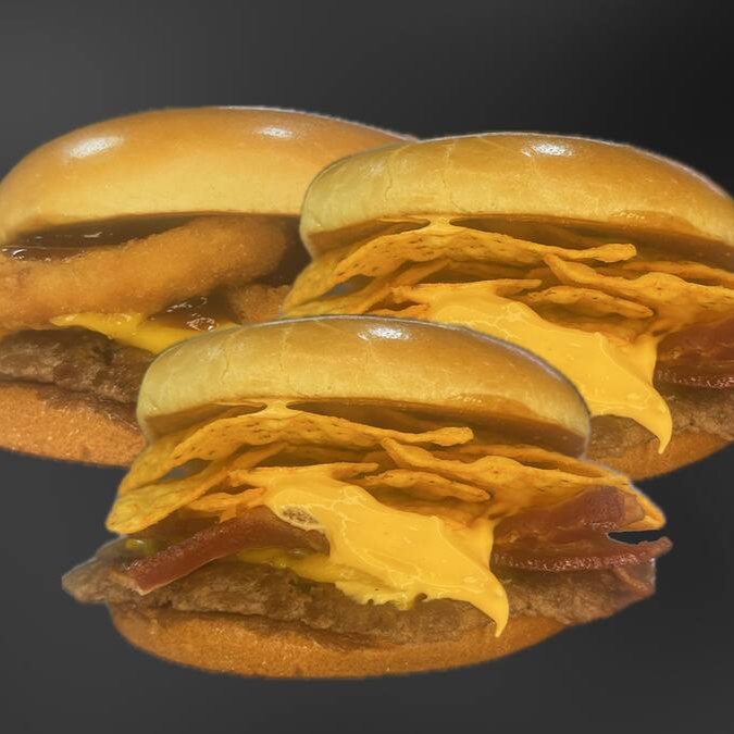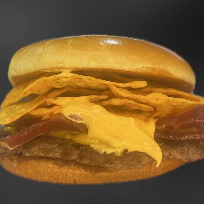 Irresistível combinação de sabores, carne de 150g, delicioso queijo cheddar derretido, que se une ao bacon crocante, proporcionando uma explosão de sabores. A adição do cheddar cremoso e dos irresistíveis Doritos, traz uma textura única. E, para finalizar com maestria, uma maionese especial.