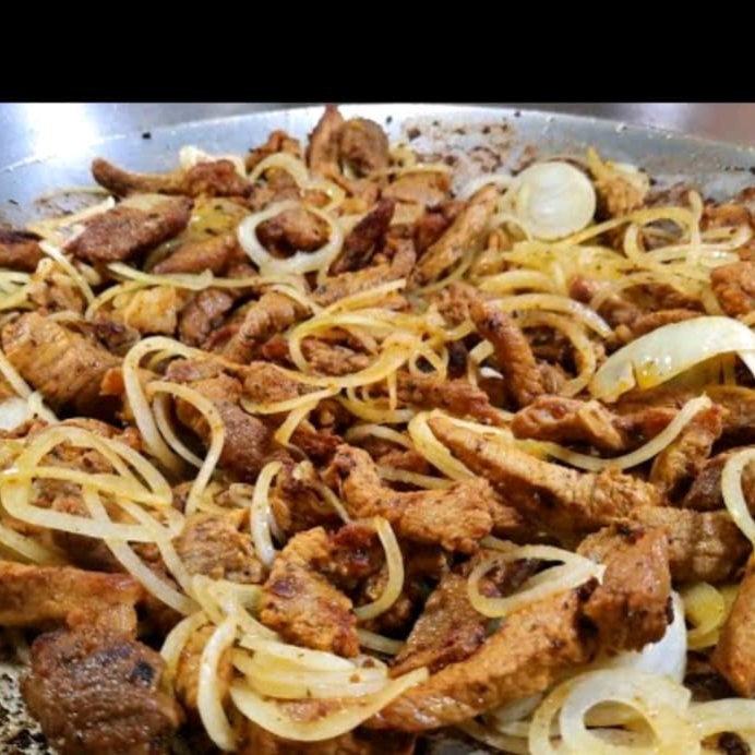 Bife e cebola.